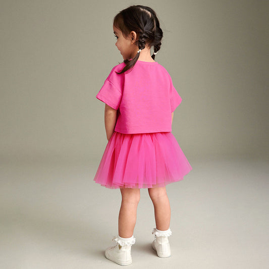 Summer Baby Kids Cartoon Pattern T-shirt and Tulle Skirt Clothing Set for Girls