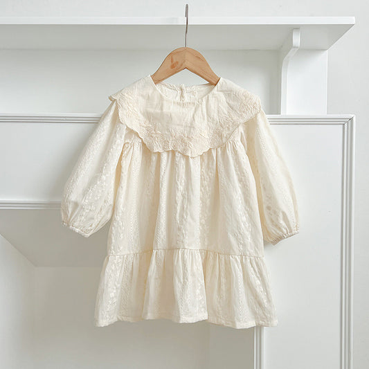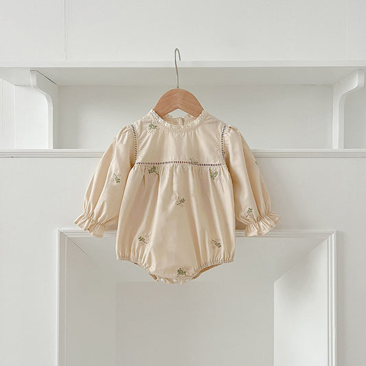 Arrival Autumn Baby Kids Girls Long Sleeves Floral Embroidery Pattern French Collar Onesies and Dress – Princess Sister Matching Set