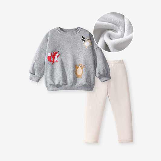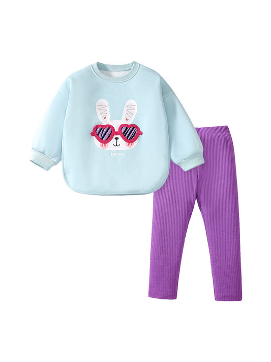 Winter and Spring Baby Kids Long Sleeves Cute Cartoon Pattern Top and Pants Fluffy Clothing Set