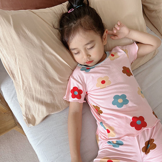 Summer Baby Kids Girls Flowers Pattern Short Sleeves T-Shirt And Shorts Casual Home Clothing Set