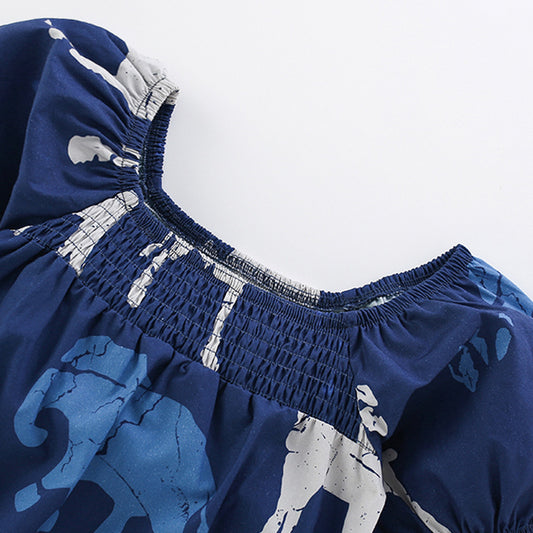 Summer Arrival Animals Pattern Short Sleeves Square Neck Dress for Stylish Girls