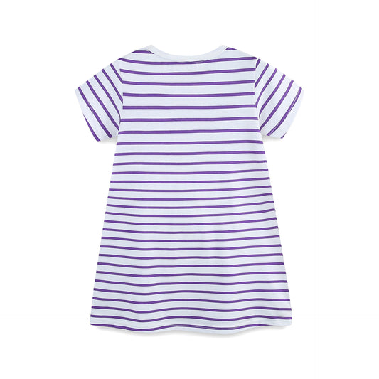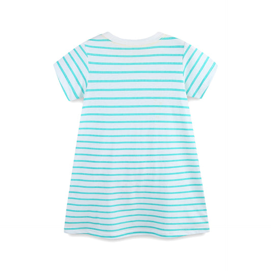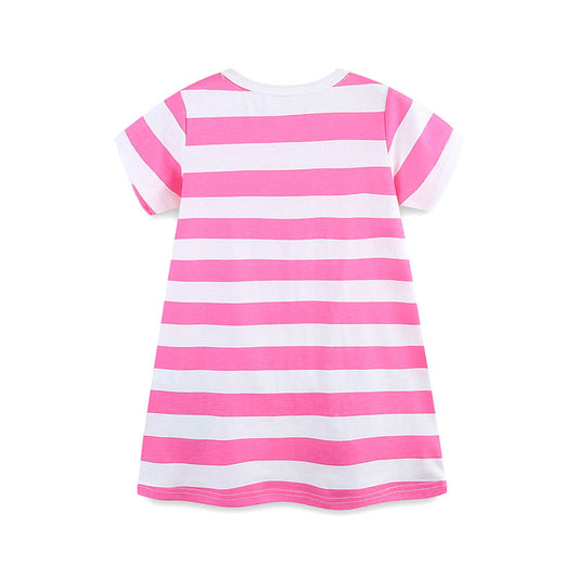 Summer Unicorn Logo Short-sleeved Striped Dress with Crew Neck for Stylish Girls