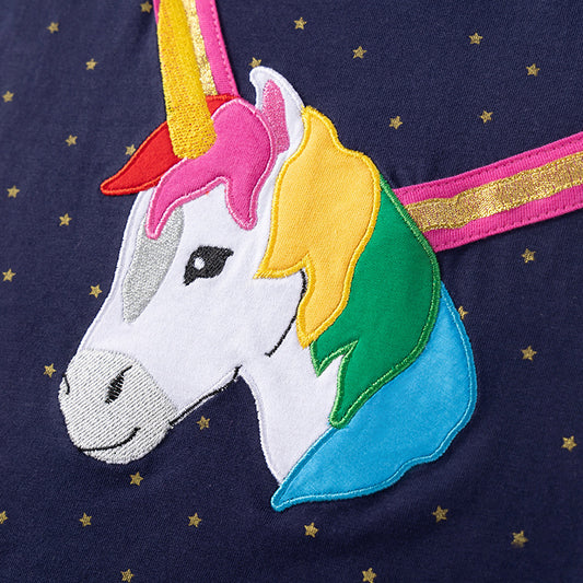 Summer Arrival Unicorn and Dots Pattern Short Sleeves Dress for Stylish Girls