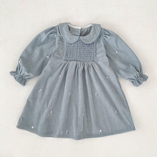 Autumn and Spring Arrival Baby Kids Girls Long Sleeves Flowers Pattern Tulle Decorated Dress