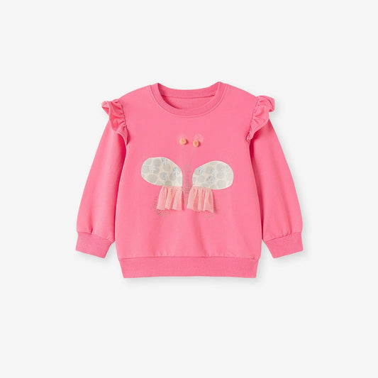 Spring and Autumn Girls Butterfly Cartoon Pattern Long Sleeves Crew Neck Top Sweatshirt and White Pants Clothing Set