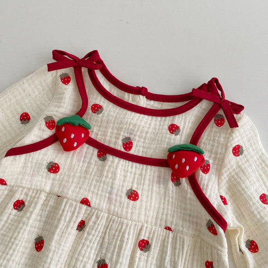 Autumn Arrival Baby Girls Long Sleeves Crew Neck Strawberry Pattern Rompers