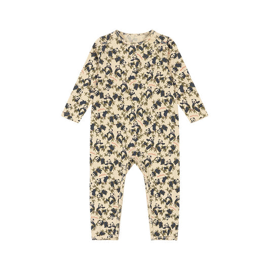Spring Moon/Pine Trees Print Crew Neck Single Breasted Comfy Rompers