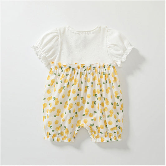 Summer Arrival Baby Girls Short Sleeves Cute Lemon Overalls Pattern Rompers
