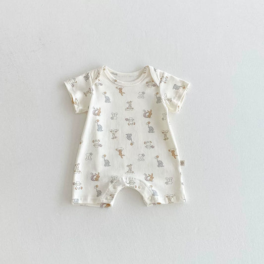 Summer Arrival Baby Unisex Animals Cartoon Pattern Short Sleeves Rompers