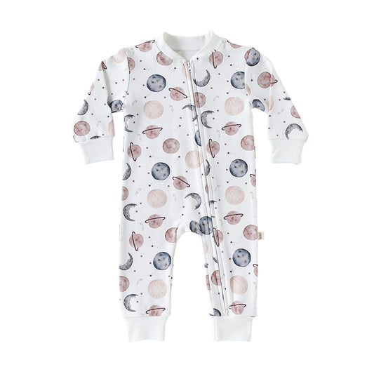 Autumn Arrival Baby Unisex Long Sleeves Planet Pattern Zip-up Rompers