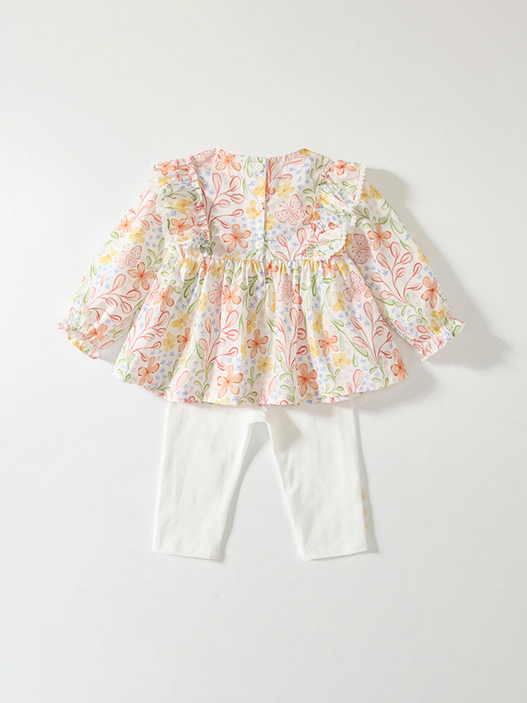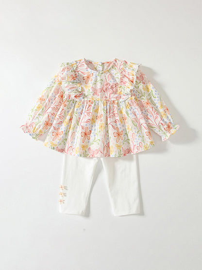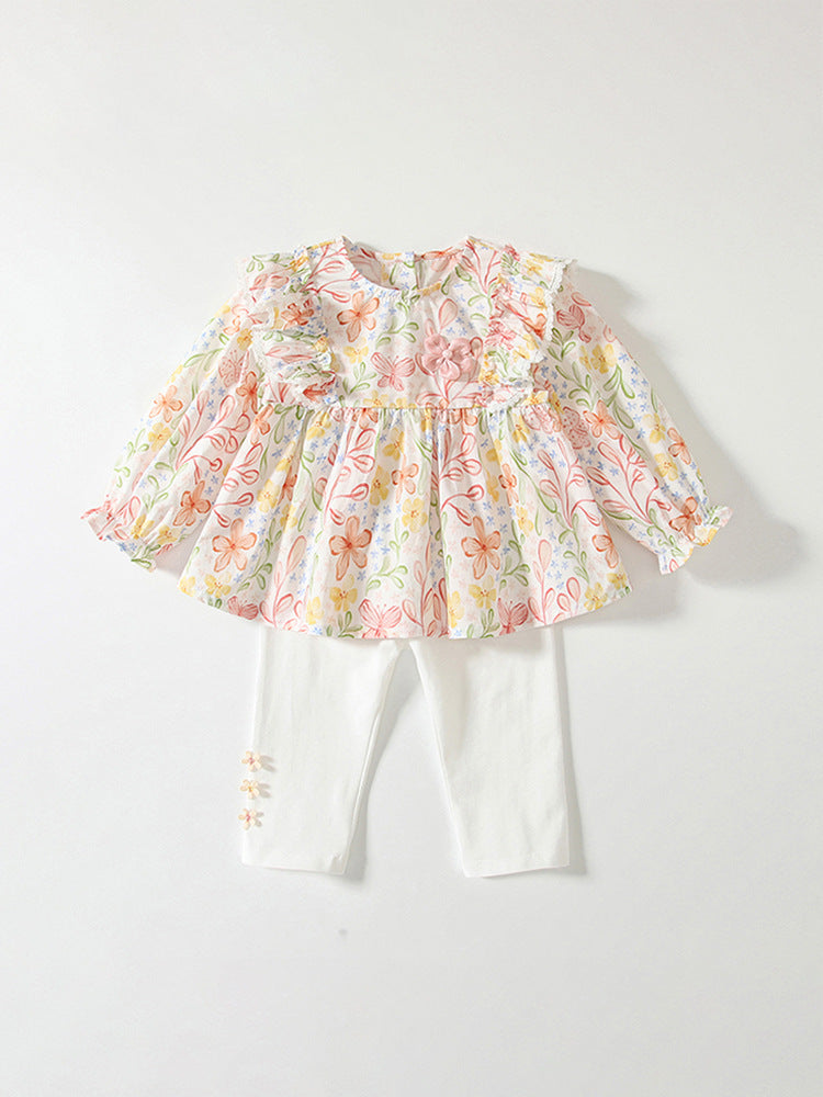 Arrival Spring Baby Girls Long Sleeves Floral Design Top Dress and Pants Set – Clothing Set