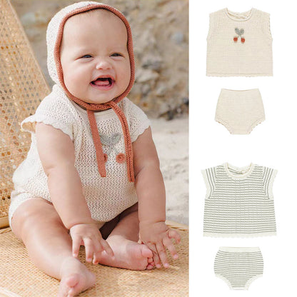 • ☀️ Unisex Sleeveless Knit Design: Includes a cozy vest and matching bloomers for effortless summer style.
