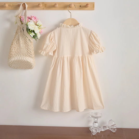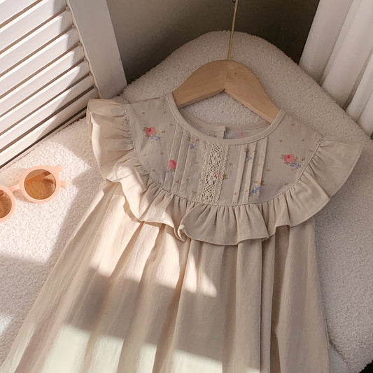 Summer Baby Kids Girls Short Sleeves Lace and Flowers Embroidered Pattern Dress