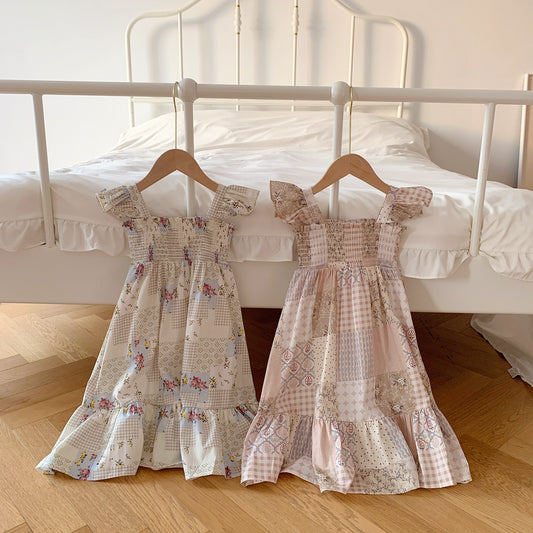 Summer Arrival Girls Cute Color Patchwork Flowers Pattern Collar Sleeveless Onesies and Dress – Princess Sister Matching
