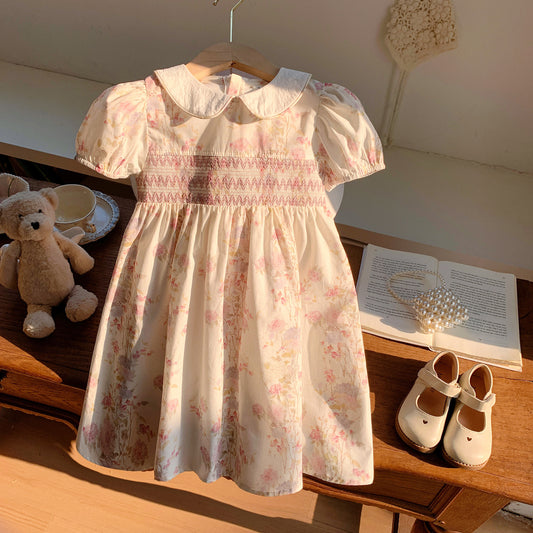 Summer Arrival Floral Pattern Short Sleeves Peter Pan Collar Dress for Stylish Girls