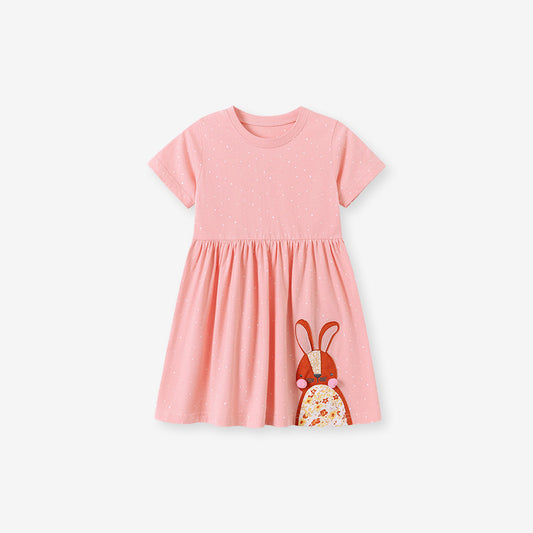 Summer Arrival Girls’ Rabbits Pattern Crew Neck Short Sleeves Dress