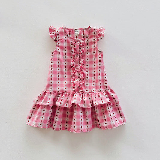 Summer Arrival Plaid Pattern Crew Neck Front-open Sleeveless Dress for Stylish Girls