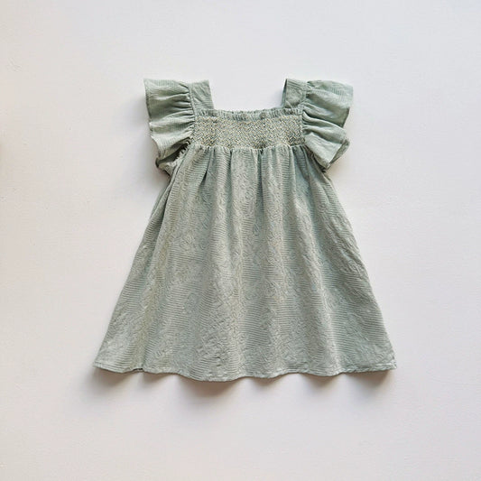 Summer Arrival Baby Kids Girls Fly Sleeves Solid Color Plain Dress