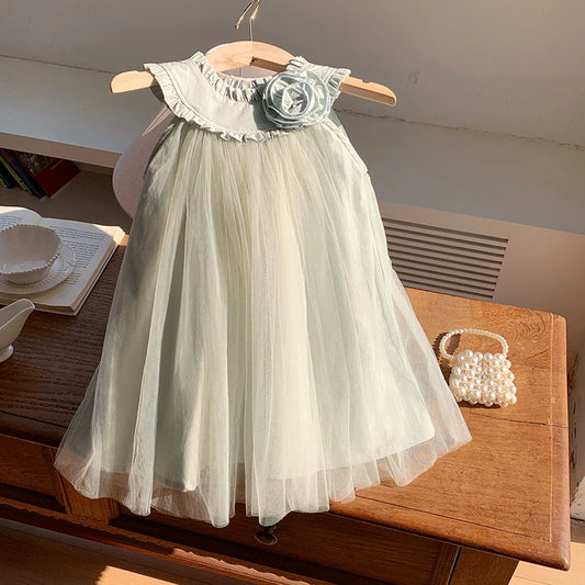Summer Arrival Sleeveless Solid Color Tulle Dress for Stylish Girls