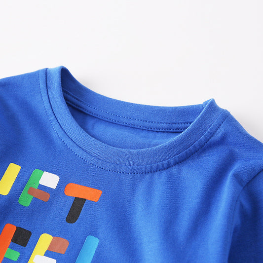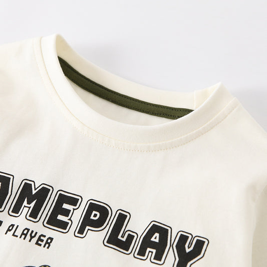 Autumn and Spring Arrival Cartoon and Geometric Pattern Long Sleeves Top for Boys