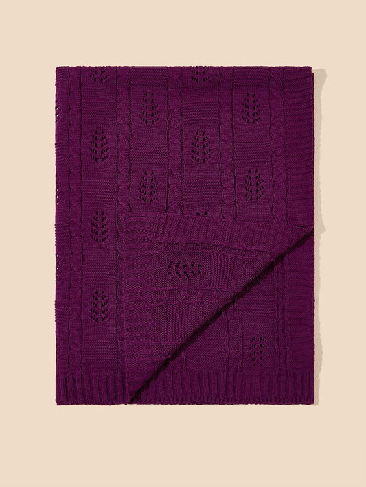 Kids Hollow Carved Graphic Solid Color Knitted Blanket