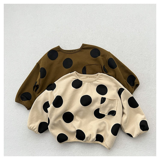 Baby Kids Unisex Kids Black Polka Dots Crew Neck Long Sleeve Pullover
