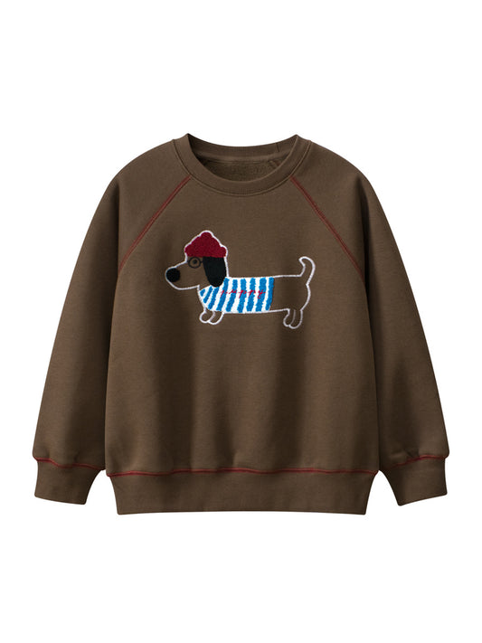 Arrival Baby Kids Puppy Embroidered Pattern Crew Neck Long Sleeves Warm Cozy Pullover