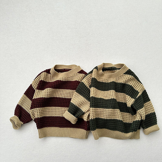 Baby Unisex Kids Vintage Striped Crew Neck Long Sleeve Pullover Sweater