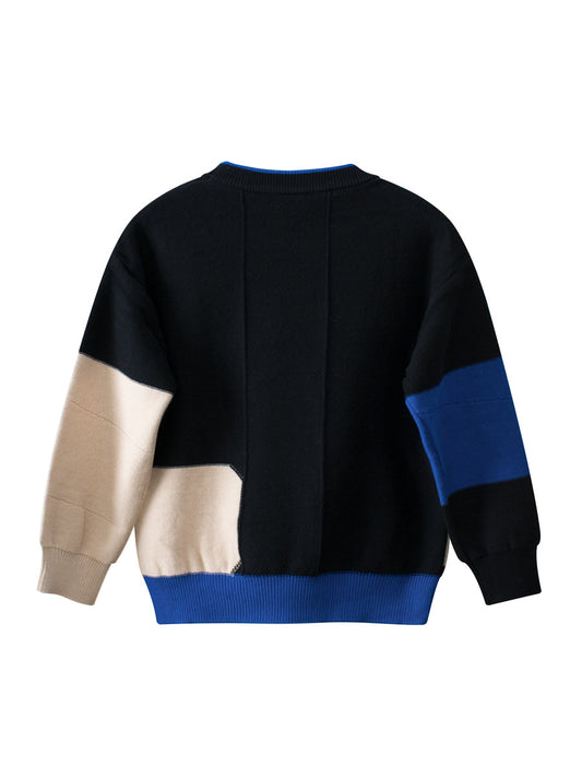 Baby Boy Kids Color Patchwork Crew Neck Long Sleeve Knitwear Pullover