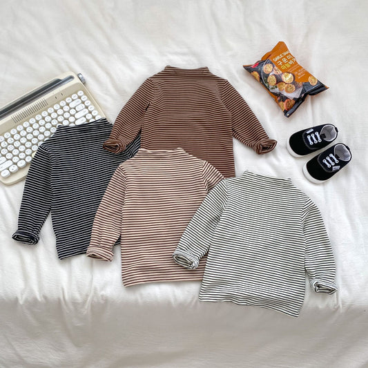 Autumn Baby Kids Unisex Striped Long Sleeves Turtle Neck Top Pullover