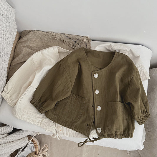 Baby Solid Color Mori Crinkle Cotton Vintage Style Coat Jacket
