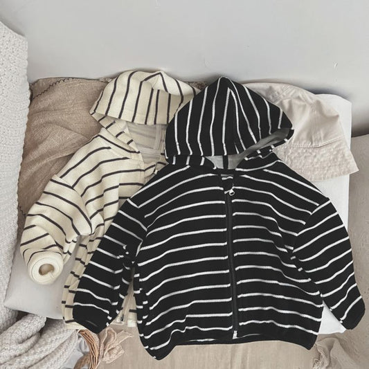 Baby Boy Striped Graphic Zipper Front Design All Match Coat