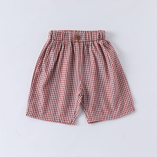 Summer Arrival Kids Unisex Cotton Casual Style Plaid or Striped Shorts