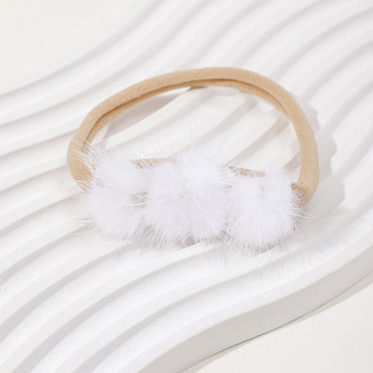 Soft and Comfortable Mink Baby Elastic Hairband with Pom Pom