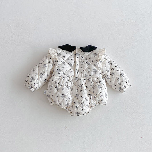 Winter Arrival Baby Girls Long Sleeves Floral Pattern Fleece-Lined Bodysuit
