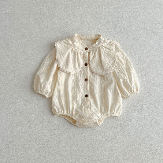 Autumn Baby Kids Girls Solid Color Flowers Pattern Embroidery Long Sleeves Onesies and Dress – Princess Sister Matching Set
