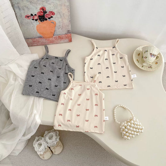 Summer Baby Kids Girls Butterfly-bows Pattern Sleeveless Vest and Plain Shorts Clothing Set