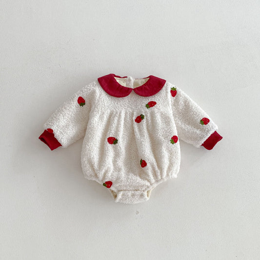 Winter Arrival Baby Girls Long Sleeves Strawberry Pattern Fluffy Warm Onesies