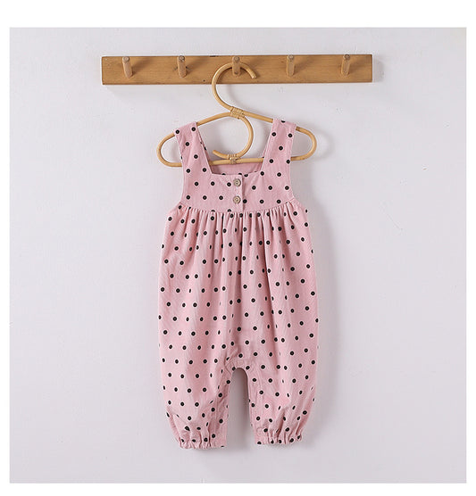 Arrival Spring Girls Long Sleeves Solid Color Top Shirt and Sleeveless Polka Dots Pattern Overalls Clothing Set
