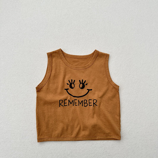 Arrival Kids Unisex Crew Neck Sleeveless Thin Cartoon And Letters Print Top Vest