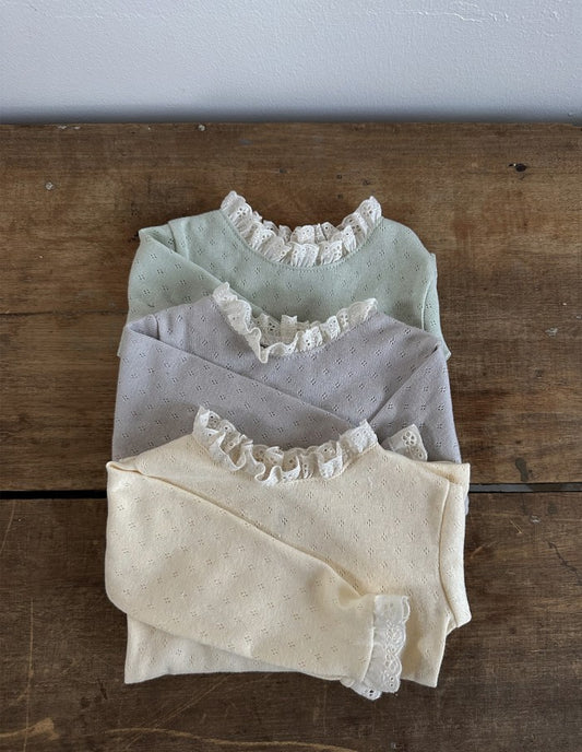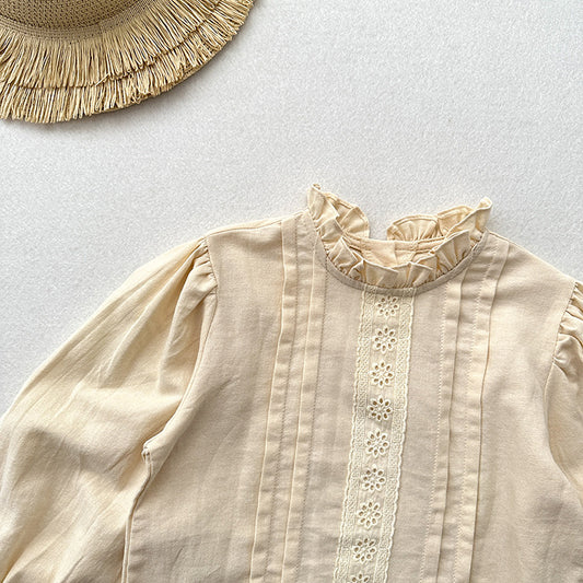 Spring Arrival Baby Kids Girls Ruffle Neck Long Sleeves Flowers Pattern Top