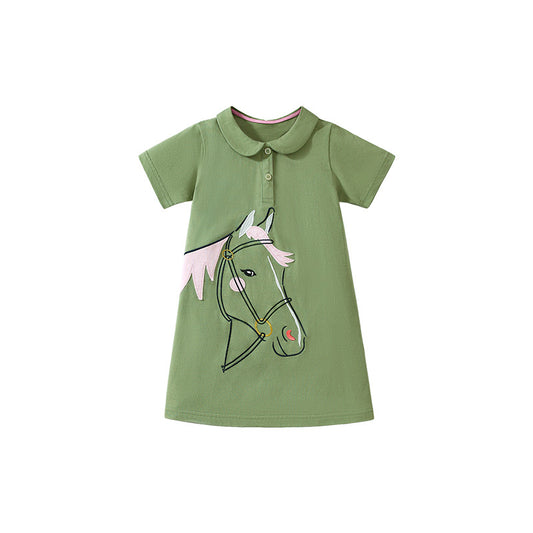 Summer Arrival Horse Cartoon Pattern Short Sleeves Dress for Stylish Girls