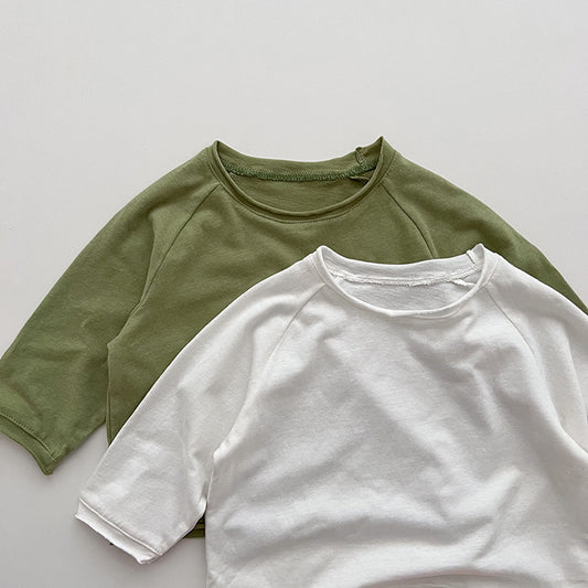 Spring Arrival Kids Unisex Soft Comfortable Long Sleeves Solid Color Top