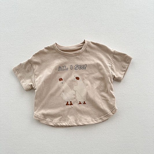 Summer Arrival Kids Unisex Soft Comfortable Short Sleeves Silly Duck Pattern Top Casual T-Shirt