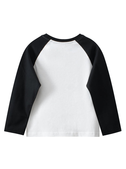 Suéter de manga larga con cuello redondo y retazos de colores con dibujos de dinosaurios para bebés y niños