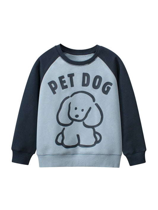 Suéter unisex de manga larga con cuello redondo y estampado de letras de dibujos animados de perro patinador para bebés y niños