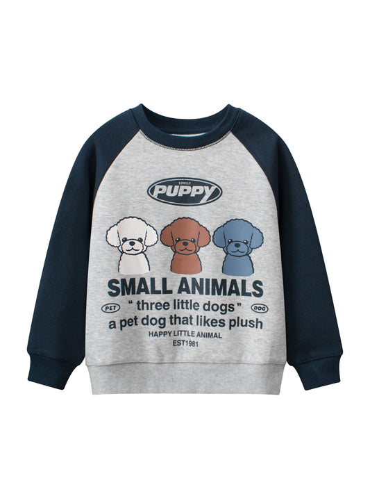 Suéter polar de manga larga con cuello redondo y dibujos animados de cachorros para bebés y niños
