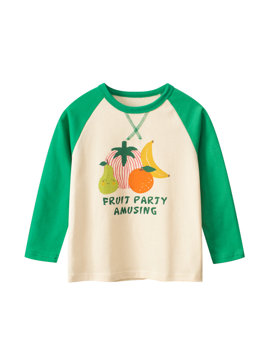 ¡Alegra el día de tu peque con esta divertida camiseta con estampado de frutas! Con un cómodo cuello redondo y mangas largas, su colorido diseño de patchwork le da un toque divertido a su ropa de diario. Perfecta para niños activos que buscan comodidad y estilo en un solo paquete.