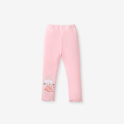 Conjunto de camiseta y pantalón de manga larga con estampado de conejos bordados con apliques informales para niñas de primavera y otoño