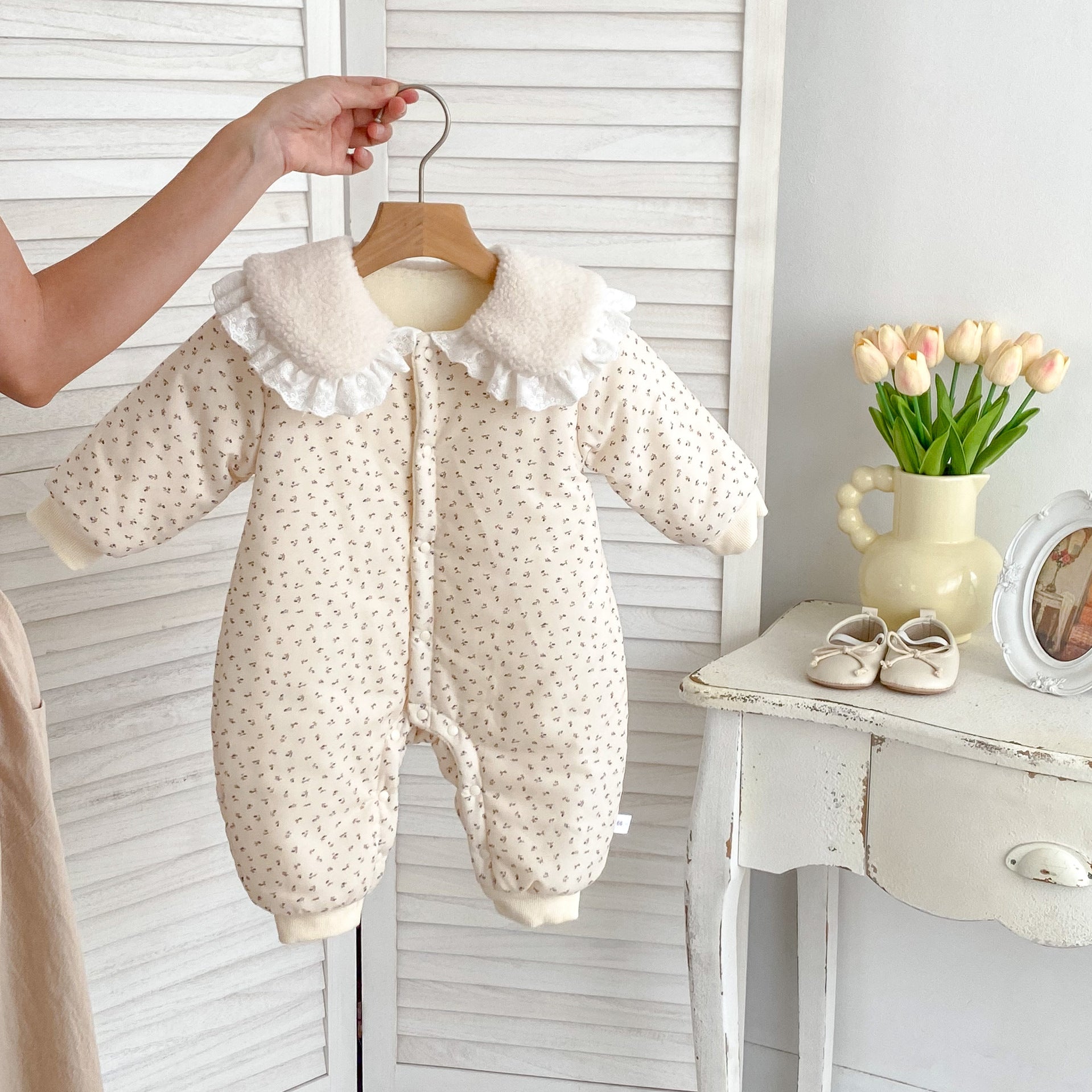 Mantén a tu pequeña abrigada y con estilo esta temporada de frío con nuestros monos de otoño e invierno con estampado floral para niñas. Confeccionados en suave forro polar, estos monos de manga larga la abrigan con su cálido estampado floral, mientras que su encantador estampado floral le da un toque de dulzura y alegría. Perfectos tanto para abrazos como para aventuras, hacen que vestirse sea divertido y cómodo todo el día.